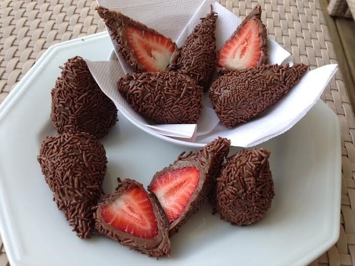 "Tínhamos o brigadeiro, os morangos e o nosso amor por coxinha. Então, pensei em juntar as três combinações e ver no que dava. Brigadeiro com morango já existe, porém, em formato de coxinha, com um morango inteiro dentro, nunca tinha visto", conta.